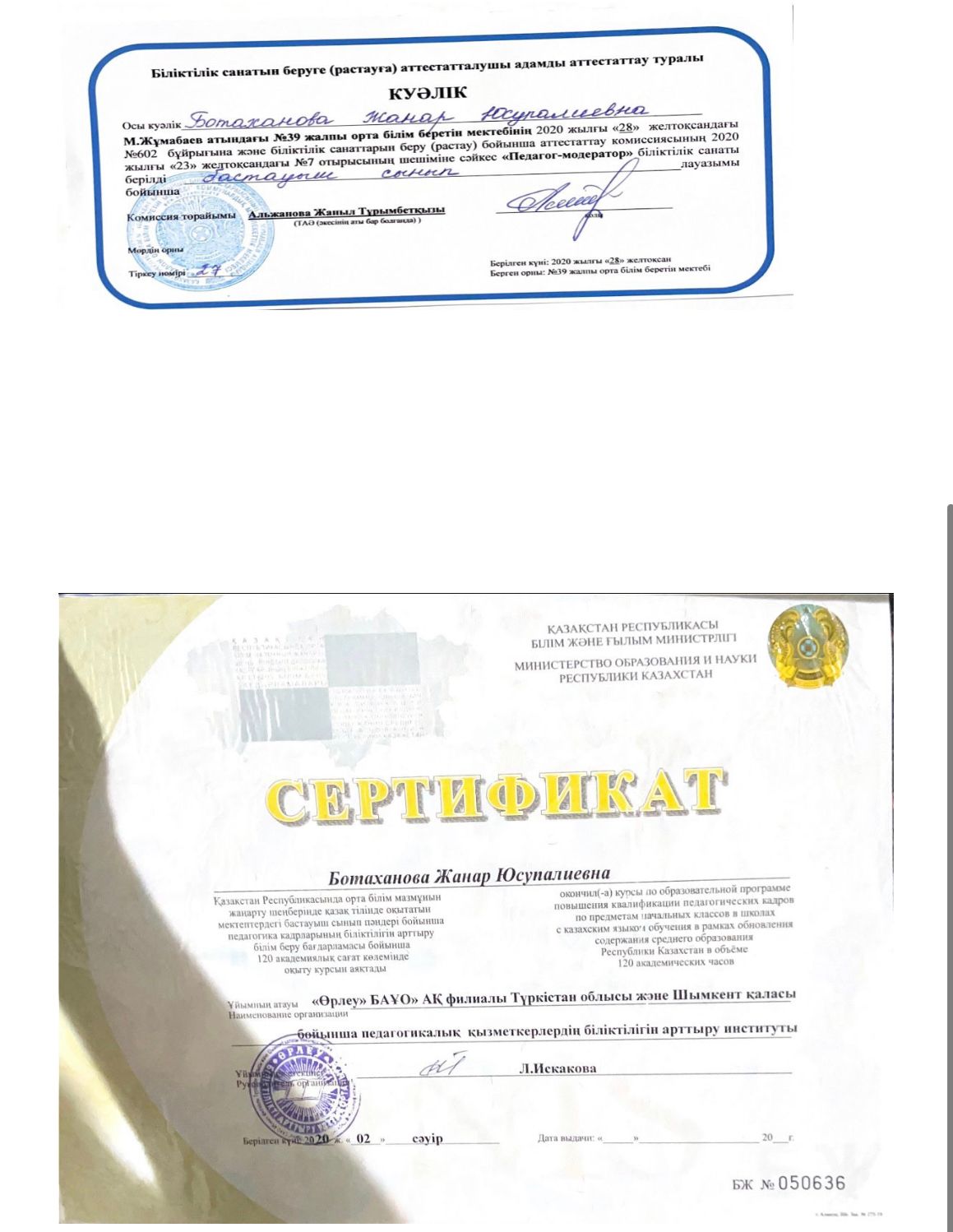 » Ботаханова Жанар Юсупалиевна
