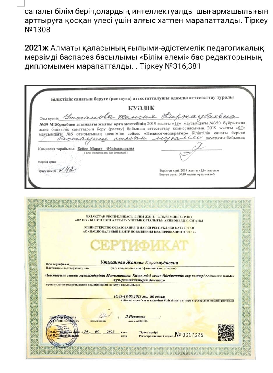 » Утжанова Жансая Каржаубаевна