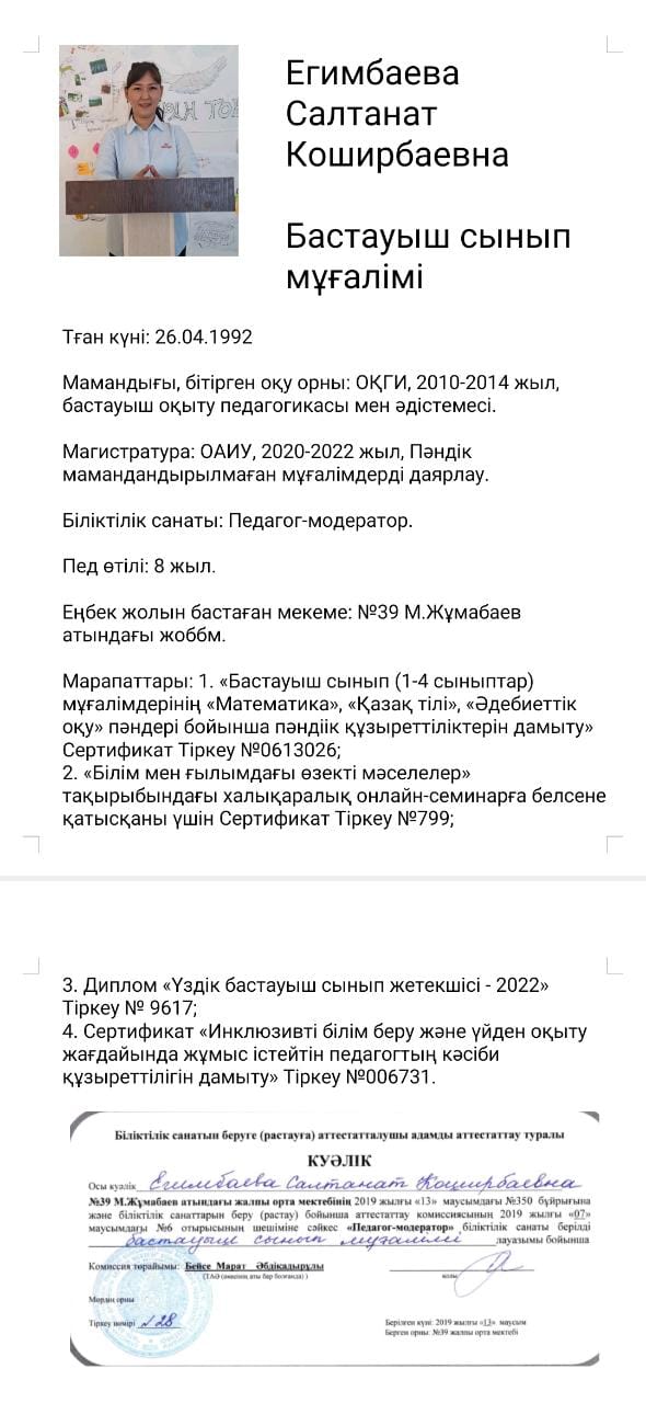 » Егимбаева Салтанат Коширбаевна